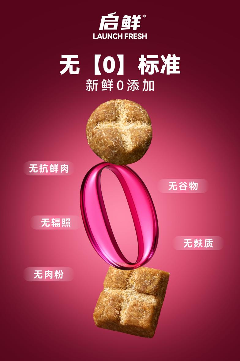启鲜宠粮以“新鲜”与“功效”构建核心竞争力,成为门店吸引客流的关键抓手。品牌旗下功能性鲜肉烘焙系列,以无“0”标准,安心健康占领消费者心智。无“0”即5个0添加。0抗生素肉源:产品中所有肉源使用无抗鲜肉,从源头杜绝肉源细菌问题;0肉粉:区别市场同类烘焙粮,产品无肉粉添加,采用人食级原切鲜肉食材缓慢烘焙成型,保留更多营养风味;0谷物、0麸质添加,避开宠物因谷物、麸质过敏的风险;0辐照:启鲜宠粮依托工厂10万级净化车间和优质生产设备,产品无需辐照即可入袋,保留营养活性,避免辐照会使蛋白变性或者辐射残留破坏产品健康的储存状态,从而可能使得宠物健康存在的风险。启鲜宠粮从原料到成品,以更透明的生产线和更严苛的质检体系,成为宠主的安心之选。
