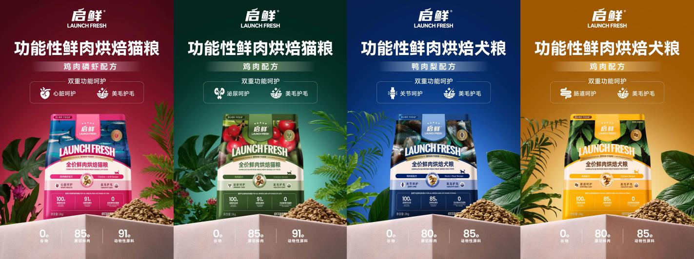 启鲜宠粮鲜肉烘焙系列全系列采用100%鲜肉注浆生产工艺,最高添加85%原切鲜肉(启鲜猫粮85%、启鲜犬粮80%),以高鲜肉含量和国际尖端设备KARLSCHNELL超细粉碎机优质工艺铸就满足宠物各成长阶段的全面营养需求。更针对宠物高频健康需求打造专项呵护配方:猫咪款覆盖心脏呵护、泌尿呵护,狗狗款聚焦关节呵护和肠胃健康管理,且全系列搭载美毛护毛功效,形成“一袋多效”的科学喂养解决方案。这种精准匹配宠主需求的产品设计,让门店能快速响应不同养宠家庭的诉求,显著提升成交率。